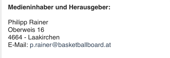 Wenn Sie der Ansicht sind, dass Inhalte auf Basketballboard.at Ihre Rechte verletzen (Urheberrecht, Leistungsschutzrecht, Bildrechte, Persönlichkeitsrechte etc.), genügt eine formlose Mitteilung per E-Mail.