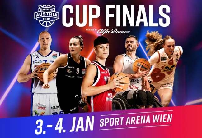Zum ersten Mal finden die Basketball Austria Cup Finals in der Sport Arena Wien statt – und setzen gleich ein starkes Ausrufezeichen zum Start ins neue Basketballjahr. Zwei Tage lang steht Wien ganz im Zeichen des heimischen 5x5-Basketballs: Damen, Herren und Rollstuhl-Bewerbe vereint in einem großen, inklusiven Event für die gesamte Basketball-Community.